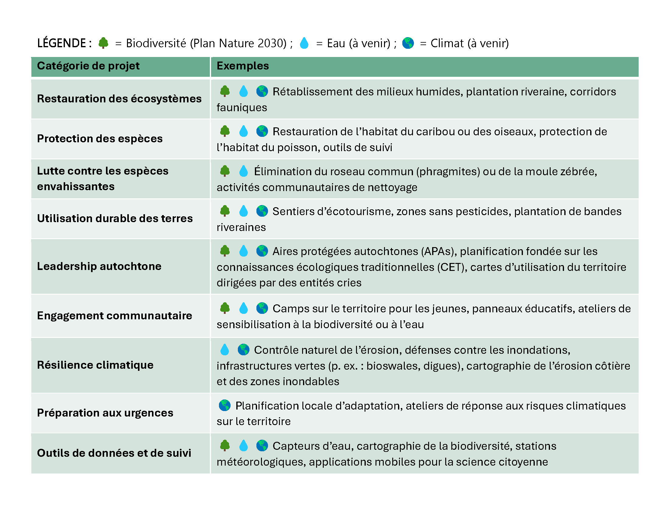 Exemples de types de projets souhaités :(liste à adapter à partir du Guide, ex. restauration, suivi, ateliers, éducation)